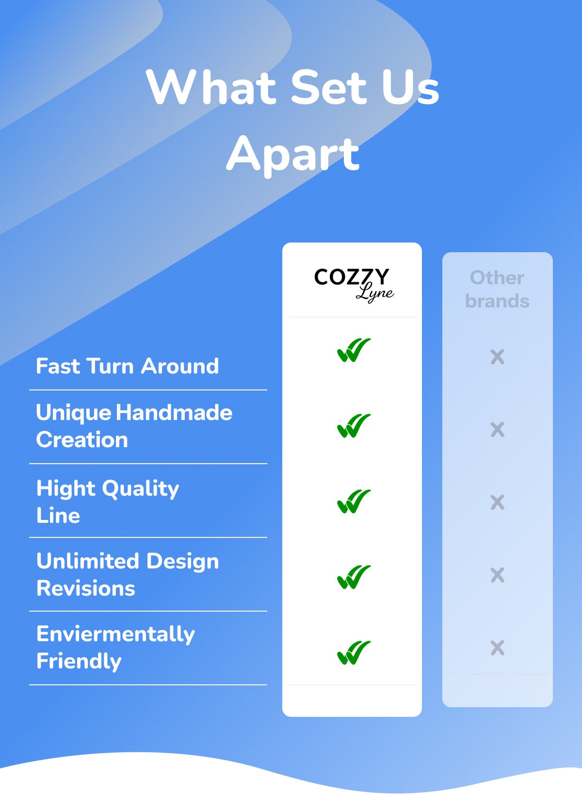 We’re here for you! Just email us anytime at support@cozzy-lyne.com.